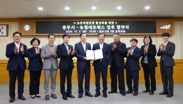 농협중앙회(회장 강호동)에 따르면 2025년 12월2일(화) 충주시청에서 농협네트웍스와 충청북도 충주시가 지역경제 및 농촌체험관광 활성화를 위한 업무협약(MOU)을 체결했다.