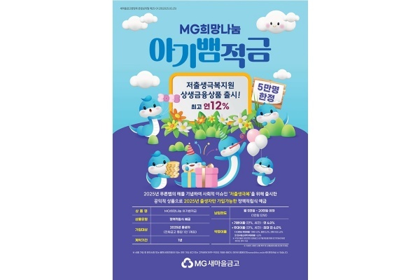 한편 새마을금고는 2023년 깡총적금, 2024년 용용적금, 2025년 아기뱀적금과 MG꿈나무적금 및 MG한가위적금 등 다양한 지원사업을 지속적으로 발굴 및 추진해오고 있다.