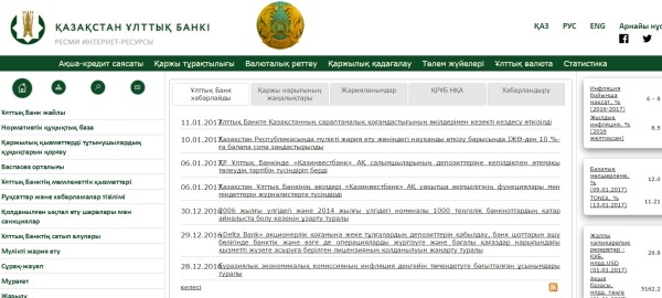 ▲카자흐스탄 중앙은행(National Bank) 홈페이지
