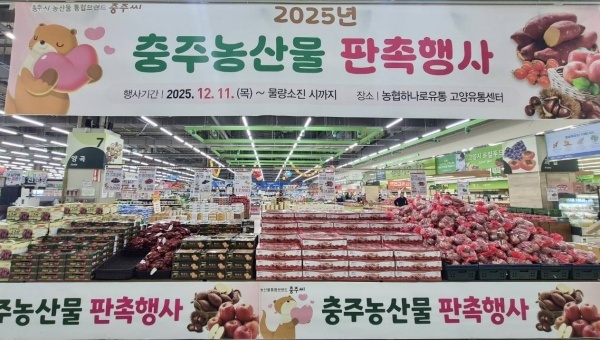 농협중앙회(회장 강호동) 농협경제지주(농업경제대표이사 박서홍)에 따르면 2025년 12월11일(목)부터 7일간 농협하나로마트 고양점에서 2025년 충주 농산물 특판행사를 실시한다.