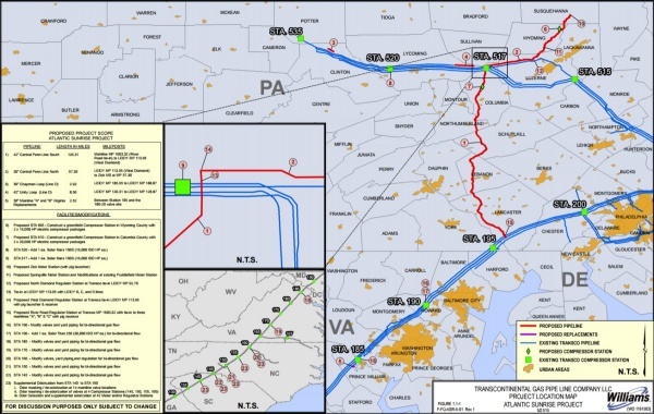 미국 연방에너지규제위원회(Federal Energy Regulatory Commission, FERC)에 따르면 윌리엄즈(Williams)사의 $US 30억달러 규모의 북동쪽 아틀란틱 선라이즈(Atlantic Sunrise) 천연가스 파이프라인 확장계획을 승인했다.