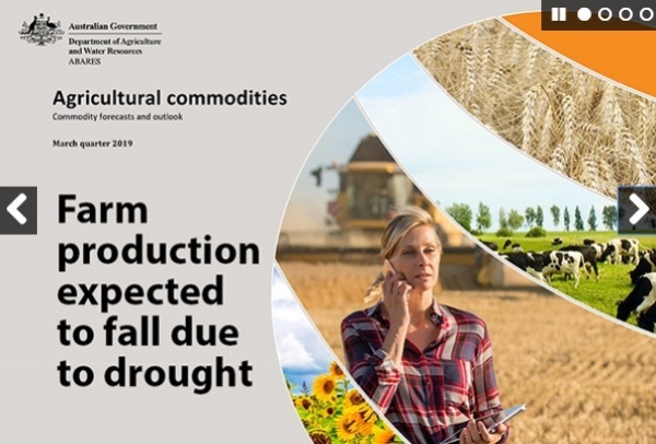 오스트레일리아 농업자원경제과학국(ABARES)에 따르면 회계연도 2018/19년 전체 농산물 생산량은 $A 580억 달러로 2년 전 638억 달러 대비 많이 감소한 것으로 집계됐다.