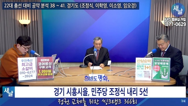 2024년01월23일(화요일) 새날 유튜브 방송은 2020년 21대 국회의원 선거에서 당선된 경기도 시흥시을 조정식 의원이 제시한 선거공약을 평가했다. 평가를 위한 방송에는 푸른나무, 이상구 원장, 민진규 소장(국가정보전략연구소)이 출연했다.