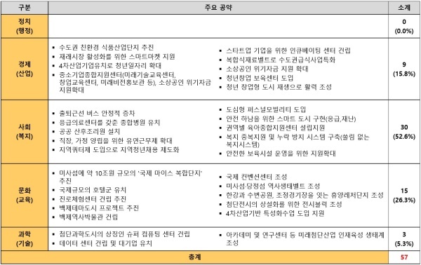 다음으로 △문화교육 공약 26.3% △경제산업 공약 15.8% △과학기술 공약 5.3% △정치행정 공약 0.0%를 각각 기록했다.