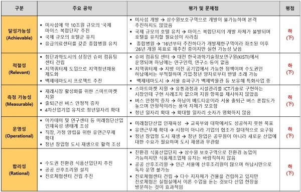 평가방법은 국가정보전략연구소(국정연)가 개발한 ‘오곡(五穀)밸리혁신(5G Valley Innovation)-선거공약(ARMOR)’ 평가 모델을 적용했다.
