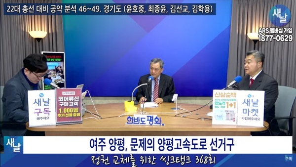 2024년02월06일(화요일) 새날 유튜브 방송은 2020년 21대 국회의원 선거에서 당선된 경기도 여주시·양평군 김선교 의원이 제시한 선거공약을 평가했다. 평가를 위한 방송에는 푸른나무, 이상구 원장, 민진규 소장(국가정보전략연구소)이 출연했다.