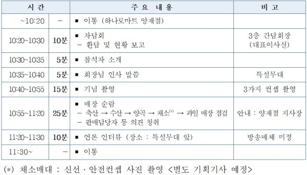 ▲ 농협, 최초 농식품·영농자재·유류 동시 대규모 할인 판매 행사 시간계획(안) [출처=농협중앙회]