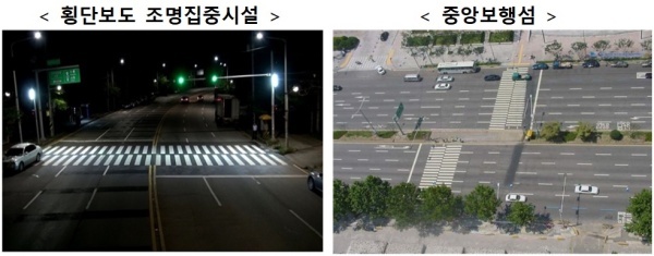 - 최근에 중간에 교통섬을 만들고, 횡단보도의 넓이를 늘리고, 차선이 많은 곳은 횡단 보도를 2개로 나누어 중간에 쉬었다가 건너갈 수 있도록 하는 구조 개선이 추진되고 있습니다.