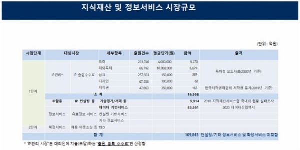 - 그렇습니다. 우선 국내의 특허 관련 등록 및 관리, 그리고 기술평가와 거래 등 정보 관련 시장의 규모가 연간 10조 원을 넘습니다.