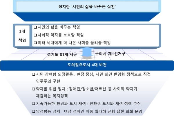 구리시의장에서 경기도의원으로 성장하는 각오와 비전 제시... 도의원오로서 4대 비전 확립해 직접 민주주의 구현 추구