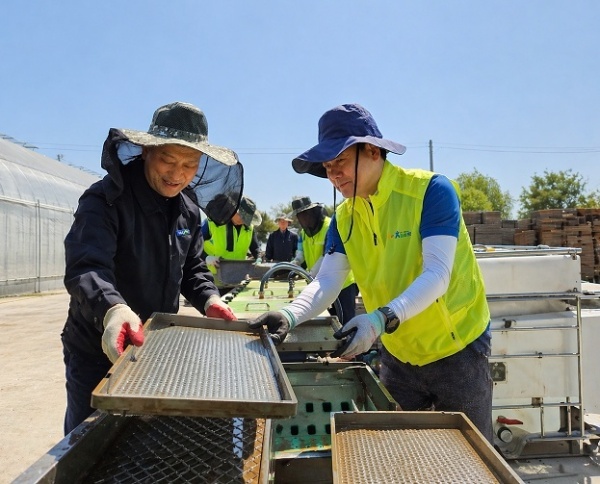 이날 김주양 대표이사를 비롯한 임직원 등은 모내기 철을 앞두고 모판 세척 및 나르기 작업에 참여하며 현장에 힘을 보태고 육묘장 시설을 둘러보며 관계자들의 애로사항도 청취했다.