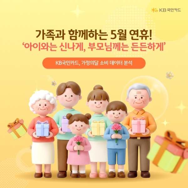 KB국민카드(사장 김재관)에 따르면 2026년 5월 가정의 달을 맞아 소비 트렌드 변화를 살펴보기 위해 최근 3년간 5월 주요 기념일을 중심으로 신용카드 및 체크카드 소비 데이터를 분석했다.
