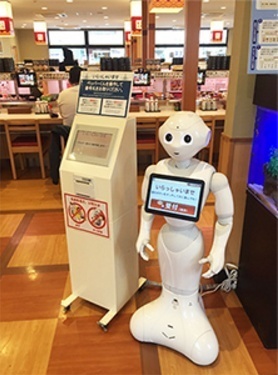 일본 외식체인업체 젠쇼홀딩스(ゼンショーホールディングス)에 따르면 2017년 2월 소프트뱅크의 인간형 커뮤니케이션 로봇 ‘페퍼’를 활용한 고객안내 실험을 공개했다.