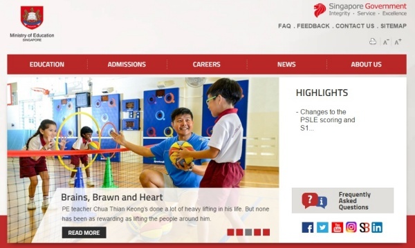 ▲싱가포르 교육부 홈페이지