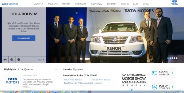 ▲타타자동차(Tata Motors) 홈페이지