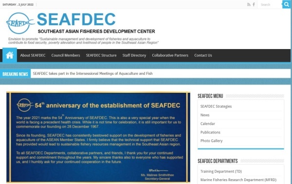 ▲ 동남아시아 수산개발센터(Southeast Asian Fisheries Development Centre Aquaculture Department, SEAFDEC/AQD) 홈페이지