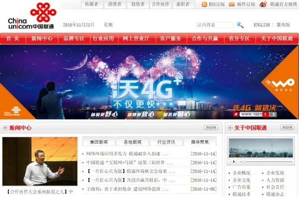 [중국] 통신대기업 차이나유니콤(中国联通), 2016년 10월 휴대전화 이용자 수는 50만7000명이 증가해 2억3258명
