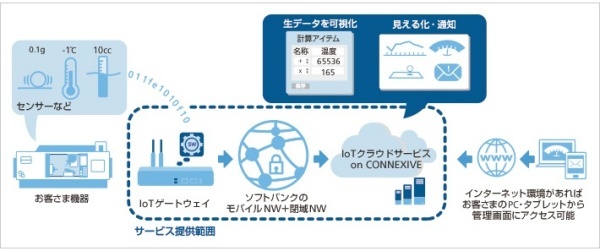 일본 통신서비스업체인 소프트뱅크는 2016년 생산설비의 가동상황을 감시하는 법인용 IT서비스를 개발했다고 발표했다.