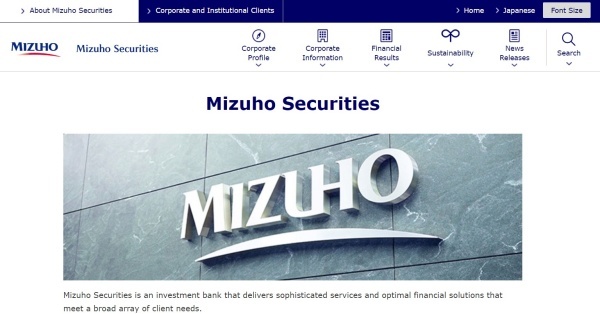 ▲ 미즈호증권(Mizuho Securities) 홈페이지