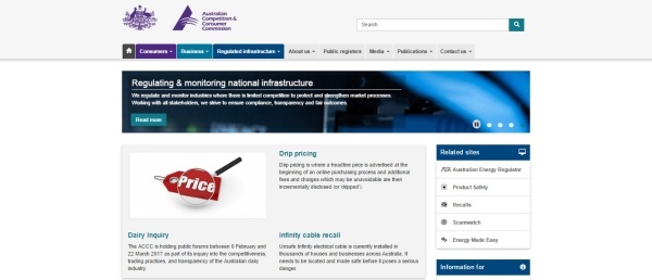 ▲경쟁소비자위원회(ACCC) 홈페이지