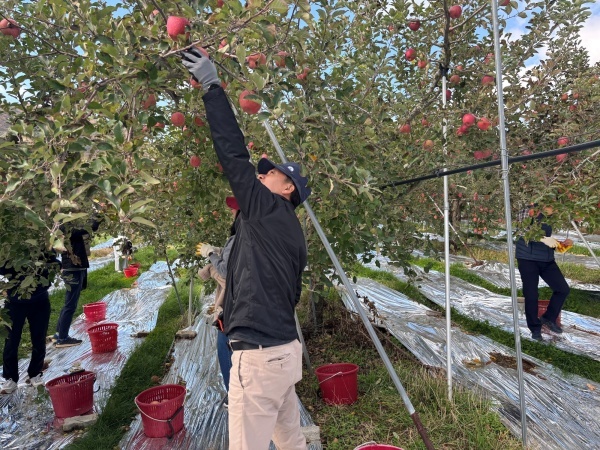 ▲ 김주양 산지도매본부장, 11월4일 경북 문경농협 관내 농가에서 사과 수확 작업 실시 [출처=농협경제지주]