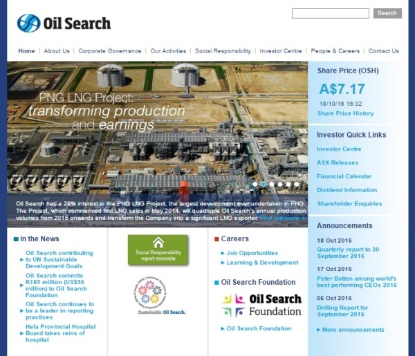 [파푸아뉴기니] 석유탐사및에너지기업 오일서치(Oil Search), 2016년 3분기 매출 $US 3억950만 달러로 전분기 대비 16% 증가