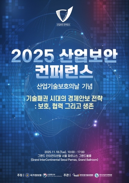 국가정보원(원장 이종석, 이하 국정원)에 따르면 2025년 11월18일(화) 산업통상부와 함께 서울특별시 강남구 삼성동 그랜드 인터컨티넨탈호텔에서 ‘2025 산업보안 컨퍼런스’ 및 ‘제15회 산업기술보호의 날 기념식’을 개최했다.