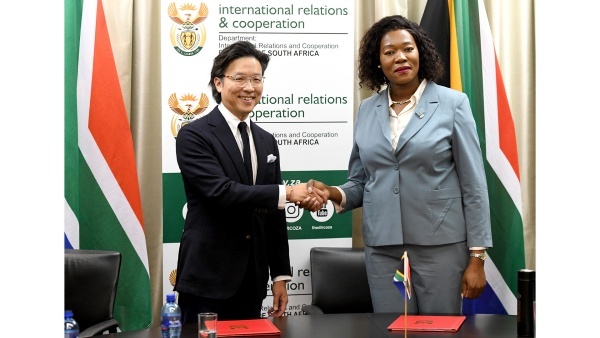 ▲ 현대자동차, G20 남아공 요하네스버그 정상회의 공식 차량 지원 업무협약(왼쪽부터 현대자동차 GPO 김일범 부사장과 안나 탄디 모라카(Anna Thandi Moraka) 남아공 외교부 차관) [출처=현대자동차그룹]