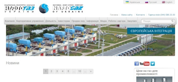 ▲나프토가스(Naftogaz)의 홈페이지