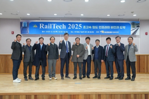 한국철도기술연구원(이하 철도연, 원장 사공명)에 따르면 2025년 12월18일(목) 철도연 본원 2동 중강당에서 「레일테크(RailTech) 2025」를 개최했다. 궤도토목 분야 연구개발 성과와 기술 로드맵을 발표했다.
