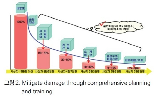 단기간에 완전한 개선은 불가능한 사항으로 중・장기적인 계획 수립과 더불어 정부 및 유관기관, 군・경・소방, 산업과 연계한 협의체가 구성되어 재난 거버넌스 차원에서 계속된 보완 발전이 필요하다.