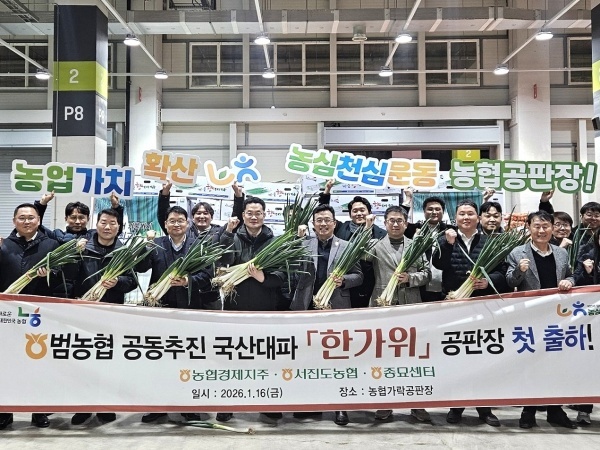 농협중앙회(회장 강호동)에 따르면 농협경제지주(농업경제대표이사 박서홍)가 2026년 1월16일(금) 서울특별시 송파구에 위치한 농협 가락공판장에서 농협종묘센터가 개발한 국산 대파 신품종 ‘한가위’를 선보였다.