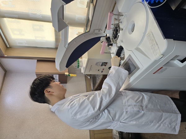 ▲ 농협 축산연구원 연구원이 혈중 대사물질 분석(MPT)을 통해 가축의 영양·건강 상태를 분석하고 있다 [출처=농협경제지주]