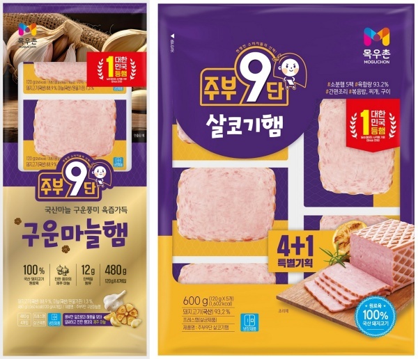 신제품 구운마늘 햄은 국산 돼지고기 함량 88.9%로 제주산 마늘의 풍미가 담겼다. 또한 스테디셀러인 ‘주부9단 살코기 햄’은 1인 가구에 맞춘 소용량 리뉴얼을 실시했다.