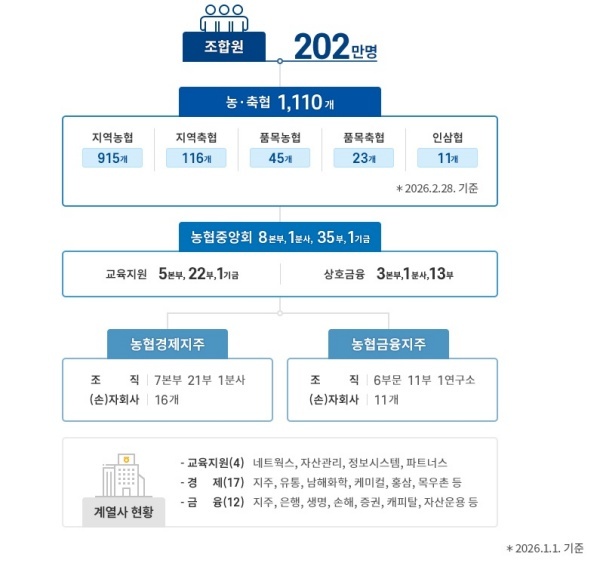 2026년 3월11일 농림축산식품부는 더불어민주당과 당정협의회에서 농협을 개혁하기 위해 법률을 재정비하겠다고 보고했다. 2025년 11월~12월 농식품부의 특별감사에서 각종 문제점이 드러났기 때문이다.