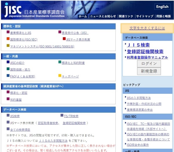 ▲ 일본산업표준조사회(日本産業標準調査会, Japanese Industrial Standards Committee, JISC)