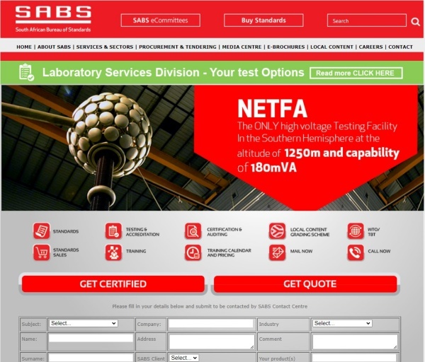 ▲ 남아프리카공화국 표준국(South African Bureau of Standard, SABS) [출처=홈페이지]