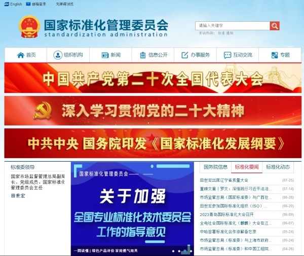 ▲ 중국국가표준화관리위원회(中国国家标准化管理委员会, Standardization Administration of China, SAC)