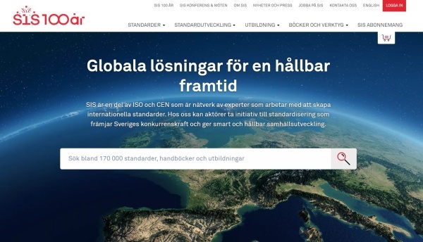 ▲ 스웨덴표준화기구(Swedish Institute for Standards, SIS) [출처=홈페이지]