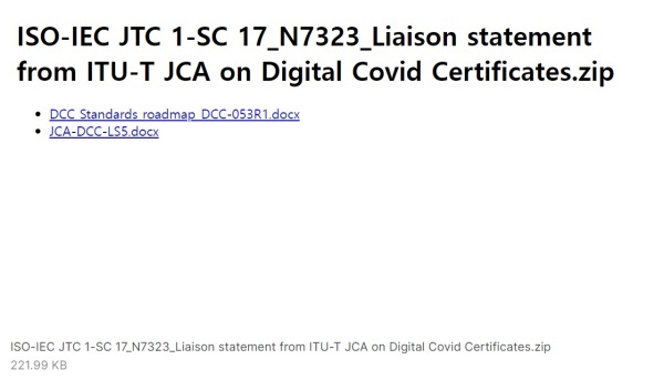 지난 10월23일 ISO/IEC 공동기술위원회 산하 분과위원회 SC 17은 'Liaison statement from ITU-T JCA on Digital Covid Certificates' 관련된 문서를 배포했다.