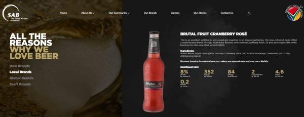 ▲SA브루어리스(South African Breweries, SAB) 홈페이지