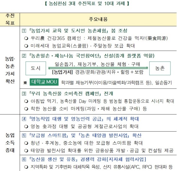 ▲ 농심천심 3대 추진목표 및 10대 과제 [출처=농협중앙회]