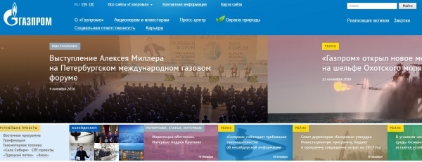 ▲가즈프롬(Gazprom) 홈페이지