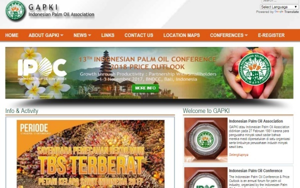 ▲인도네시아 팜오일협회(GAPKI) 홈페이지