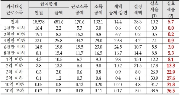 2. 실효세율(1)=결정세액/과세표준, 실효세율(2)=결정세액/과세대상근로소득(총급여)