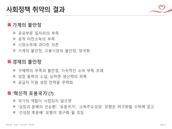 ○ (기자) 김용익 이사장님께서는 지난 1월25일 보건사회연구원이 주최한 포용국가 포럼에서 ‘포용적 복지를 위한 국가의 역할’이란 제목으로 강의를 하셨습니다. 강의를 접했던 많은 분들이 깊은 인상을 받았다고 합니다. 어떻게 이런 발제를 하게 되었나요?