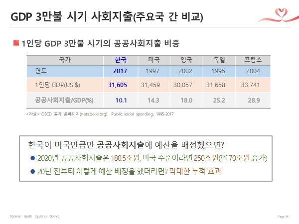 - 여기서 지적해야 할 것은 사회지출을 늘리는 것은 ‘퍼주기’이고 경제에 도움이 안 된다고 보는 관점의 잘못입니다. 사회지출은 경제에서 구매력으로 작동합니다. 구매력이라는 매개체를 통해서 분배/복지가 성장에 기여한다는 연결고리를 반드시 생각해야 합니다. 이것이 소득주도 성장의 핵심개념이 아니겠는가? 즉 복지에 쓰인 돈은 경제활동을 통해 다시 조세로 회수됩니다.