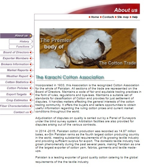 ▲카라치면화협회(KCA) 홈페이지