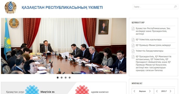 ▲카자흐스탄 정부 홈페이지