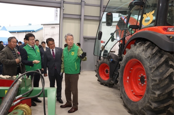 이날 강호동 회장은 자율주행 트랙터와 드론 등 첨단 농기계를 둘러보고 실시간 모니터링으로 농기계의 이상징후를 파악할 수 있는 ‘농기계 인공지능(AI) 원격관리 시스템’을 점검했다. 이어 스마트 진단기를 활용해 접촉 불량 상태의 트랙터를 직접 수리 시연하며 현장 기술력도 확인했다.